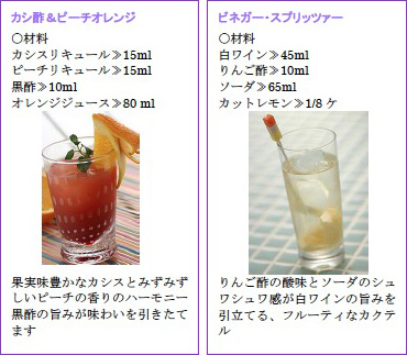 NYのバーシーンにおいてホットな素材として話題となっているビネガー。日本では、健康志向として“酢を飲む”行為は存在していたが、カクテルに使用するなんて、ちょっとオドロキでは?血液サラサラや疲労回復といった効能があるビネガーを使ったカクテルをご紹介します。